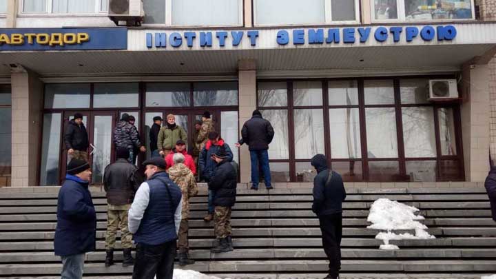 В Запорожье сегодня утром ветераны Антитеррористической операции заблокировали работу государственного предприятия «Запорожский институт землеустройства».