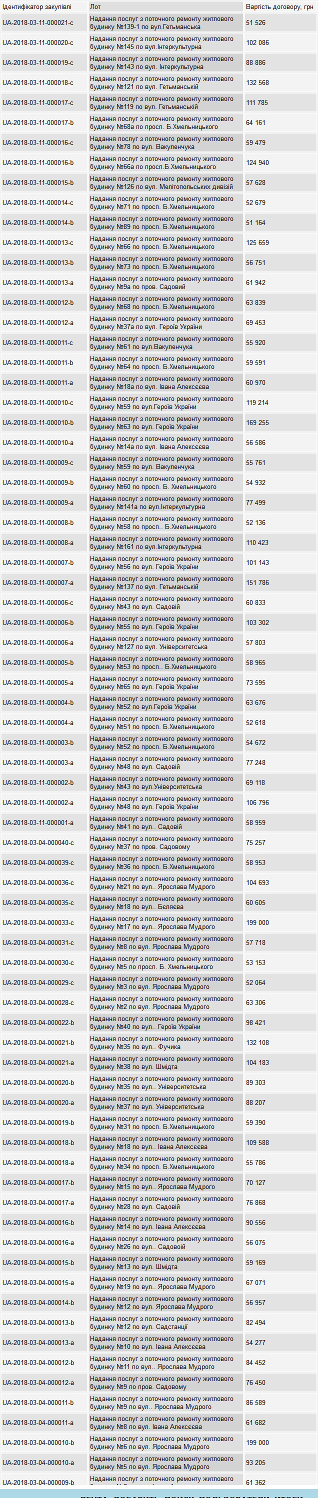 К концу года фирма должна выполнить ремонтные работы в 41 доме (полный перечень ниже). "Город для людей сервис" получило подряды без проведения конкурсных процедур. Неделей ранее предприятие получило 38 подрядов (полный перечень также ниже) на выполнение таких же услуг общей стоимостью 3,1 млн. грн.