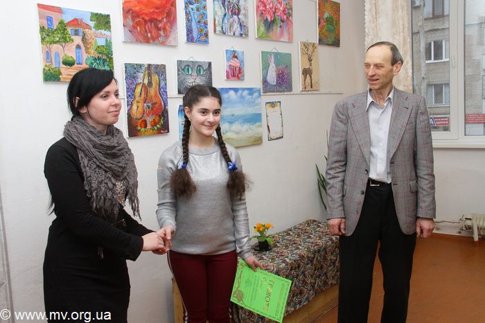 Первыми посетителями выставки стали педагоги школы и одноклассники Маргариты. Ее педагог Татьяна Хливнюк, открывая мини-выставку, рассказала, что Рита три года занимается в художественной школе: год училась на подготовительном отделении у преподавателя Сергея Михно, а сейчас уже занимается во втором классе школы. С. Михно охарактеризовал свою бывшую ученицу, как очень воспитанную и скромную девочку, которая всегда старалась, слушала учителя, добросовестно выполняла его наставления. Он выделил трудолюбие Маргариты и ее стремление учиться и совершенствоваться.