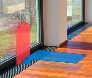 Такая техника монтируется непосредственно под покрытие пола, что позволяет значительно экономить пространство и сохранять целостность интерьера. Монтировать её рекомендуется непосредственно возле окон – таким образом вы выстраиваете барьер от проникновения холодного воздуха в помещение и сквозняков.
