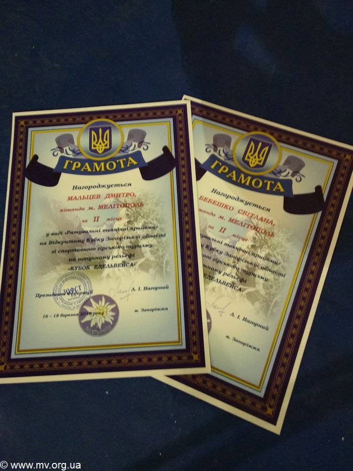 Мелитополец Дмитрий Мальцев и выступавшая за наш город запорожанка Светлана Бебешко завоевали награды на первом открытом Кубке Запорожской области по спортивному горному туризму на искусственном рельефе "Кубок Эдельвейса".