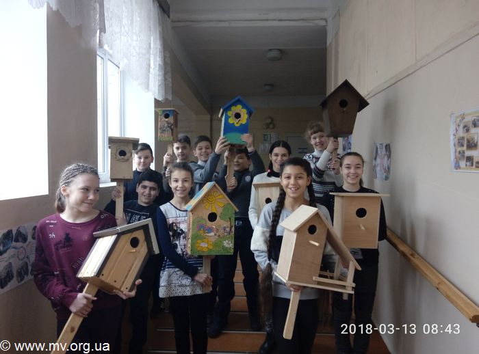 В рамках акции ученики 5-6 классов изготовили сорок скворечников. Все они были переданы в пользование Старобердянского лесоохотничьего хозяйства.