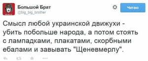90% Украинцев хотят взорвать вас падлюк, вы всех уже достали жидо патриоты, cкоро вы будете свои Удостоверения АТОшника одним местом пожирать и отмазываться что вы не были на передовой и не стреляли по мирному населению...