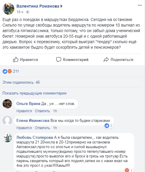 Жители Бердянска пришли в шок от поведения водителя маршрутки.