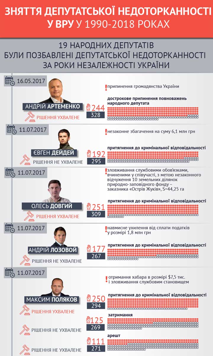 Скольких нардепов лишили неприкосновенности за годы независимости Украины