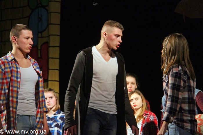 Главные роли в спектакле исполнили-прожили студенты Мелитопольского училища культуры Андрей Веклич (Адам) и Влад Мельникович (Тим), а также артисты театра Кирилл Гришко (Майк), Елизавета Ерошкина (Сани), Виолетта Губенко (Кристи), Ангелина Ниженец (Мафи). Роль двоюродной сестры Майка и возлюбленной Адама Евы пришлось сыграть самой Татьяне Николаевне. Как оказалось, на эту роль была утверждена девушка, которая в последний момент отказалась играть. Пришлось руководителю театра срочно вживаться в роль и спасать ситуацию. Сделали спектакль таким ярким и искренним не только артисты, но и художник Ольга Сапрыкина, работник сцены Дмитрий Кривошей, светорежиссер Марина Герман, звукооператор Петр Москаленко.