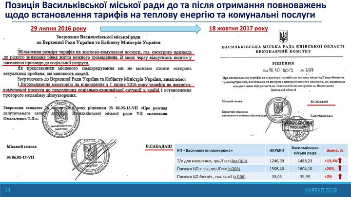 "Васильковтеплосети" в "Пояснительной записке" от 15 сентября 2017 года пишет, что государство несвоевременно компенсировало разницу в тарифах, и это привело к убыткам предприятия. Что НКРЭКУ при установлении тарифов долгое время не учитывало растущие расходы предприятия. Что зарплата сотрудников выросла, а использование тепла потребителями сократилось, и т.д.