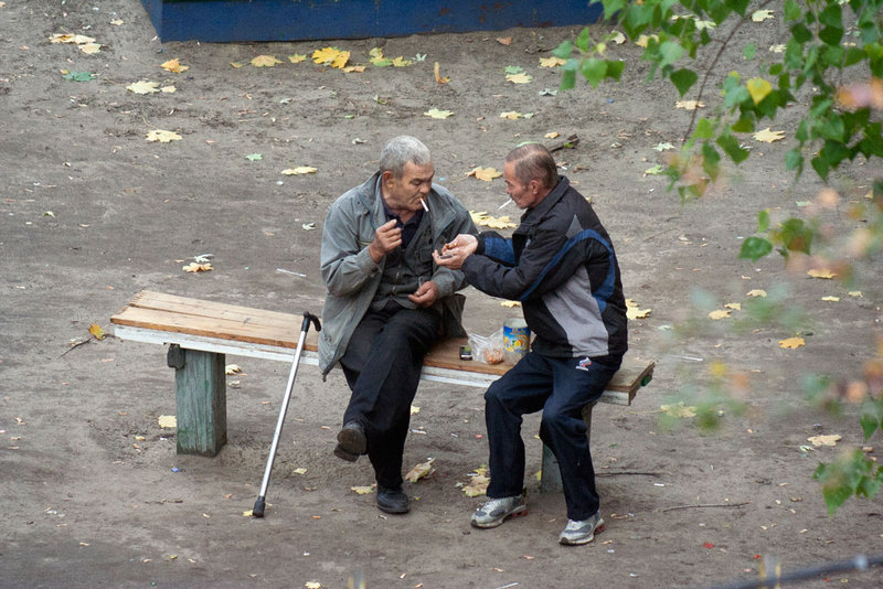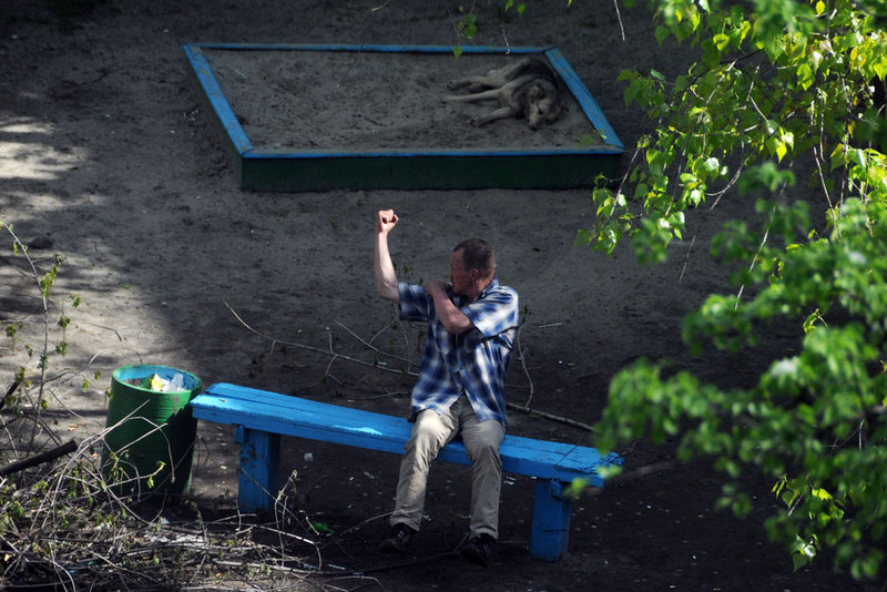 Котенко четыре года снимал все, что происходило на лавочке. Получился тайно подсмотренный театр почти шекспировского гротеска, накала и остроты. И в нем задействованы не только люди, но и собака, кот… Неприкаянные, голодные животные. Здесь жизнь и смерть сидят рядом, трутся друг о друга, смеются друг над другом, издеваются. Режиссер, неугомонный «упивец» Вакх, веселит своими спектаклями для одного зрителя (фотографа), в которых, однако, доминирует презрительный тон. Это настроение передается и человеку с фотокамерой, интонация у которого иронично-брезгливая. Эффект подсмотренности усиливает любопытство зрителя, который приобщается к подглядыванию, испытывает приятные чувства, свойственные вуайеристам, от совершения чего-то не совсем правильного, дозволенного, от проникновения в чужую тайну. Котенко, конечно же, провокатор.