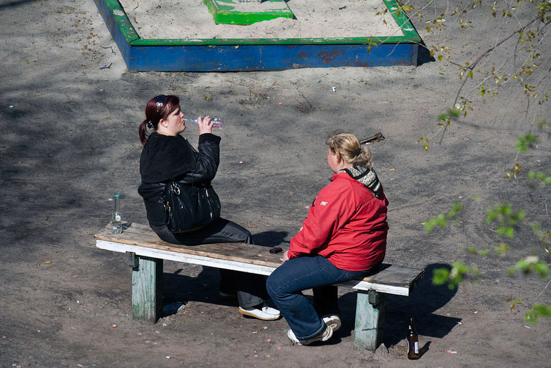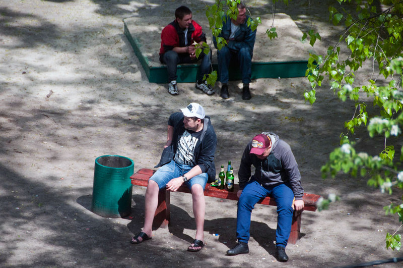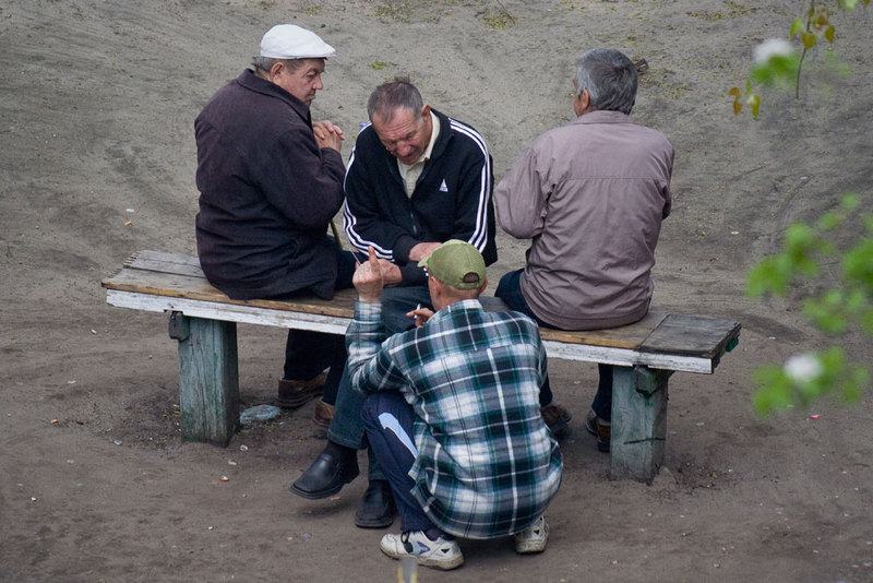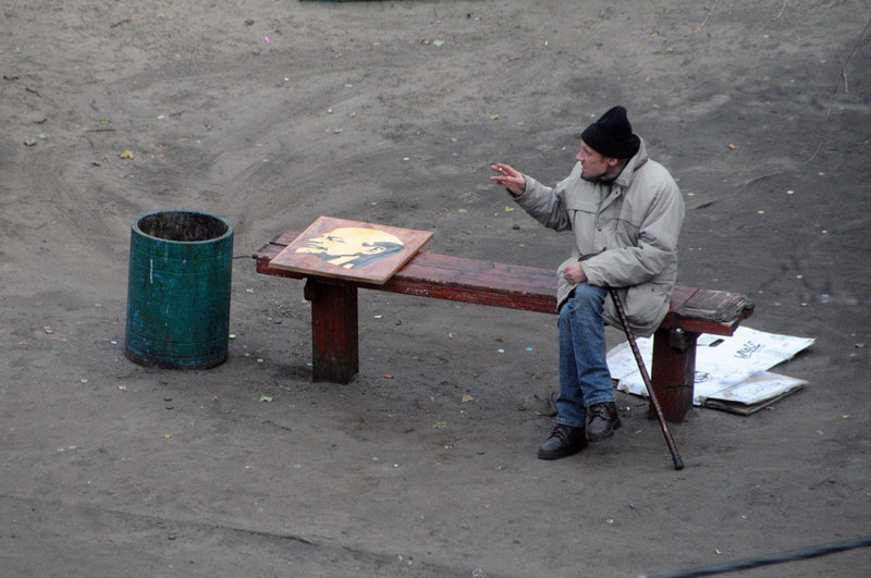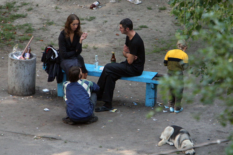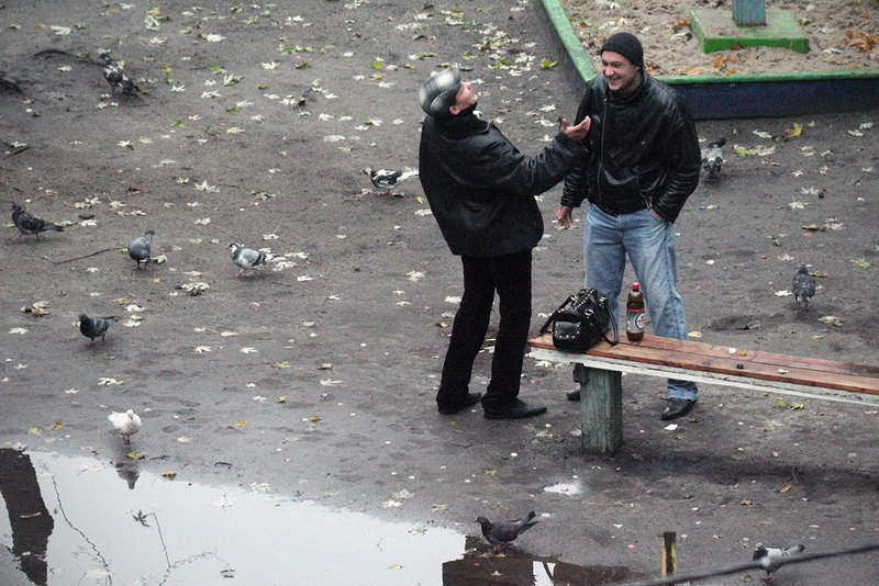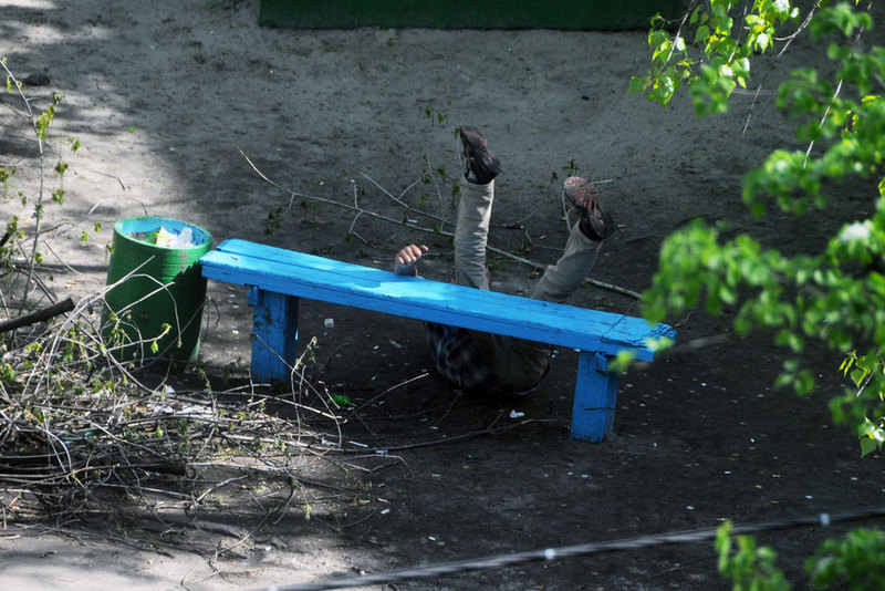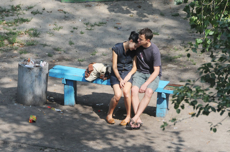 Женя не просто снимал, а исследовал целый социальный пласт населения Украины. Скамейка у него получилась еще и в виде образа раны, которая сама себя раздирает, углубляет, раздражает. Фотограф наблюдает за всем, что происходит на скамейке, сверху, моделирует взгляд бога, развлекающегося и равнодушно созерцающего происходящее. Такое впечатление, что это он поставил сюда скамейку и заставил фотографа приобщиться к жизни на ней, еще раз наставляя нас, что человек получился из земли: он «рожден грязью».