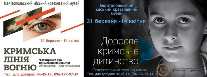 Так, 31 марта в 13.00 в Мелитопольском краеведческом музее состоится открытие фотовыставок "Взрослое крымское детство" и "Крымская линия огня".