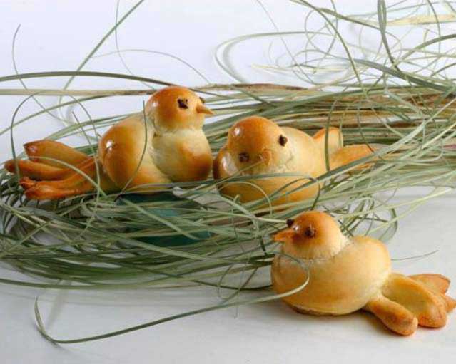 Еще на Пасху хозяйки выпекают небольшие дрожжевые булочки в форме различных зверушек - барашков, кроликов, журавлей и петушков. Печеные барашки напоминают о беззаветной жертве Христа, птицы - символ прихода весны и пробуждения природы.