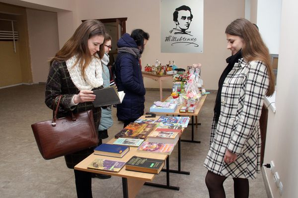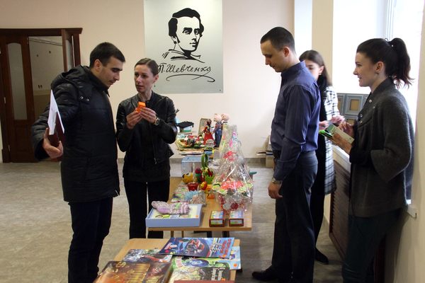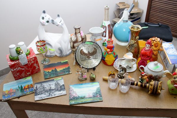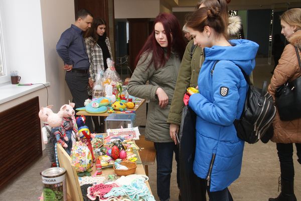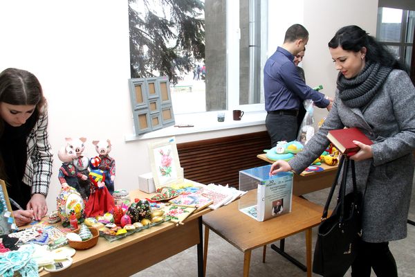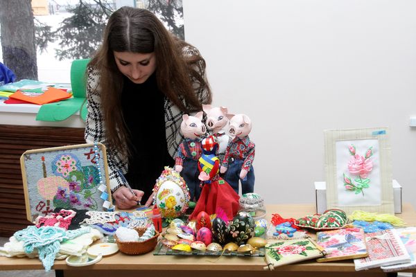 В холле Дворца культуры расположилась благотворительная ярмарка. Лотами ее обеспечили мастера декоративно-прикладного искусства, любители хэнд-мейда и простые мелитопольцы, которые принесли на ярмарку разные вещицы. Есть среди них раритет советских времен - книга "Два товарища" издательства "Детгиз" 1961 года, мужская туалетная вода, кошки-копилка, сифон для газированной воды, смешные поросята из папье-маше, вышивки, бижутерия, вязаные крючком и спицами салфетки, детские книги и игра "Монополия", куклы и сувенир из конфет и др. В общем, лоты на любой вкус, а их цены весьма демократичные.