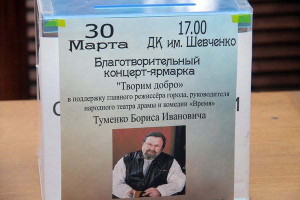 Сейчас в ДК им. Т. Шевченко и возле него начались мероприятия по сбору средств для известного мелитопольского режиссера, художественного руководителя народного театра драмы и комедии "Время" Бориса Ивановича Туменко.