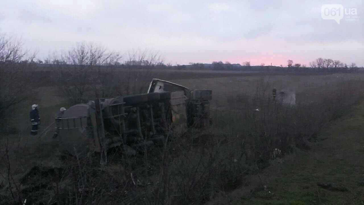 Под Запорожьем перевернулся бензовоз. ФОТО