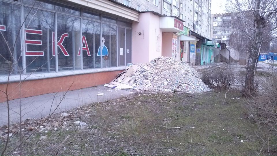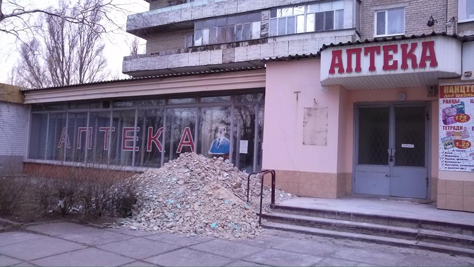 «На Н. Мелитополе пропала последняя коммунальная аптека. Кто знает что теперь будет в данном помещении? Но больше возмущает то, что новые хозяева устроили свалку строительного мусора прямо на клумбе!!!», - сказано в сообщении.