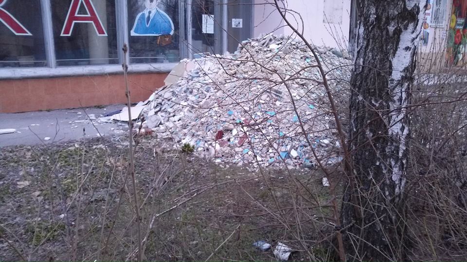 Местные жители в одном из местных пабликов сообщили о том, что в районе Нового Мелитополя в помещении коммунальной аптеки идет ремонт, вследствие чего образовалась куча строительного мусора на клумбе.