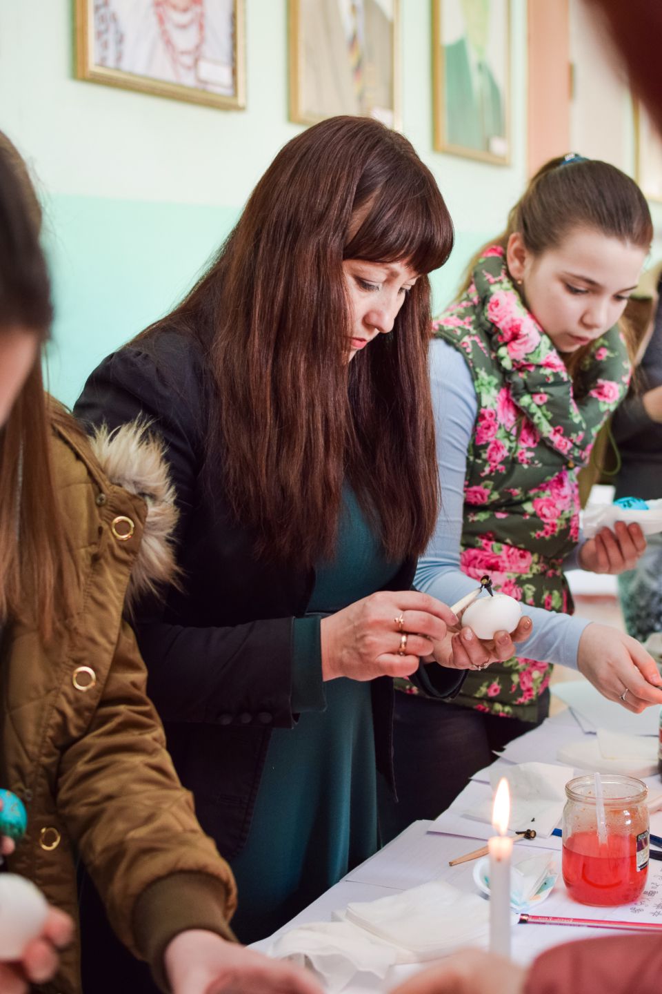 По такой технологии разрисовывали писанки и студенты агротехнологического вуза. Дружно, помогая друг другу, студенты знакомились с традициями своего народа и учились творить пасхальные, в узорах, писанки. Самым интересным для студентов оказался завершающий процесс снятия воска.