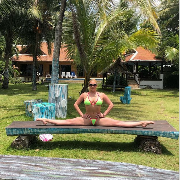 Анастасия Волочкова в очередной раз продемонстрировала шпагат, будучи облаченной в мини-бикини. Снимки она опубликовала на собственной Instagram-странице.
