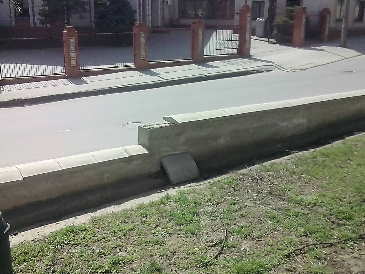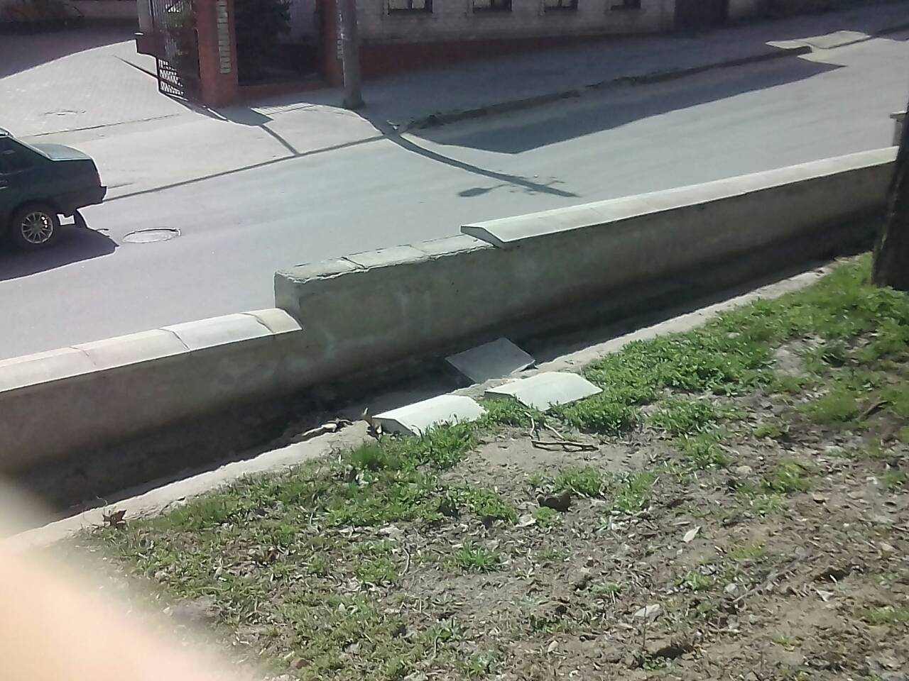 Поистине, стенку можно считать многострадальной, ведь без бетонных козырьков она остается уже не первый раз. Их установкой занималась подрядная фирма «Сейм», которая эту стену реконструировала чуть более года назад. К счастью, оторванные кем-то или же упавшие сами козырьки целые лежали рядом.