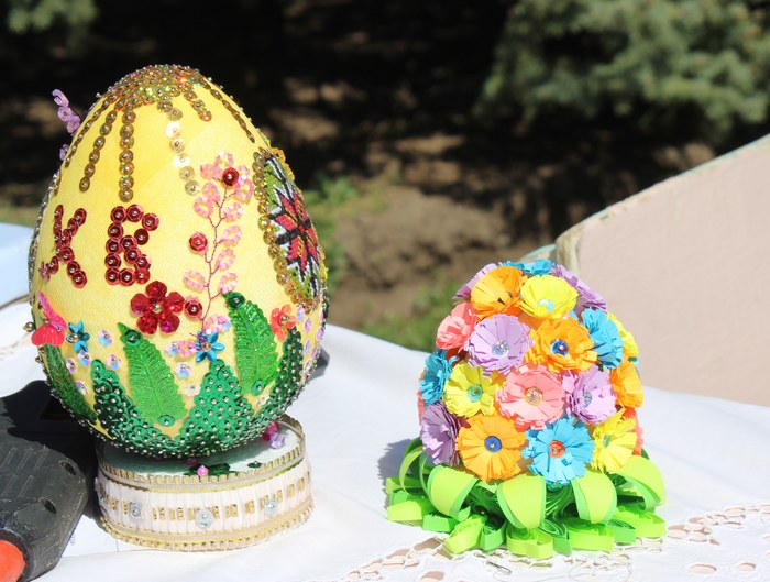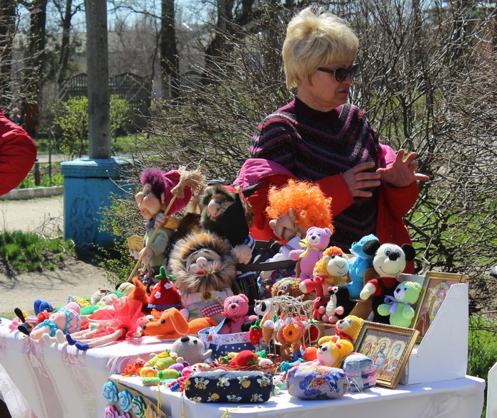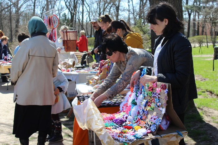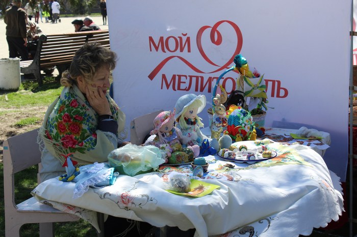 А в парке сегодня гулянье вовсю. Пестрят яркие воздушные шары, крутится сладкая вата, по аллеям гуляет молодежь и родители с детьми. Но основная локация сегодня – это летняя сцена. Именно вокруг нее собрались мастерицы и представители мелитопольских национально-культурных обществ. На площади вокруг фонтана свои работы разложили мастерицы-рукодельницы. Игрушки, сувениры, украшения – всем этим можно было полюбоваться и приобрести понравившуюся вещь. Чуть поодаль со своей продукцией расположились пчеловоды, предлагая горожан мед и продукты его переработки.