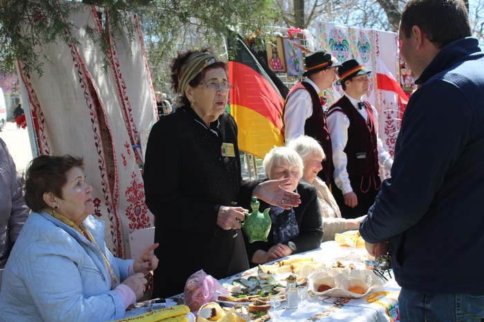 Свои палатки и столики представители национально-культурных обществ разложили прямо перед летней эстрадой. Локация так и называется – «Интеркультурный дворик». Вниманию мелитопольцев предлагаются традиционные блюда и напитки той или иной культуры, столы украшены куклами в традиционных одеждах, цветами, расписными яйцами, лентами в цвет флага и другой национальной символикой. Да и большинство представителей самих интеркультурных обществ обрядились сегодня не в повседневную одежду, а в наряды своего народа. Человек знающий сразу мог определить, где же стоят чехи, а где расположились болгары.