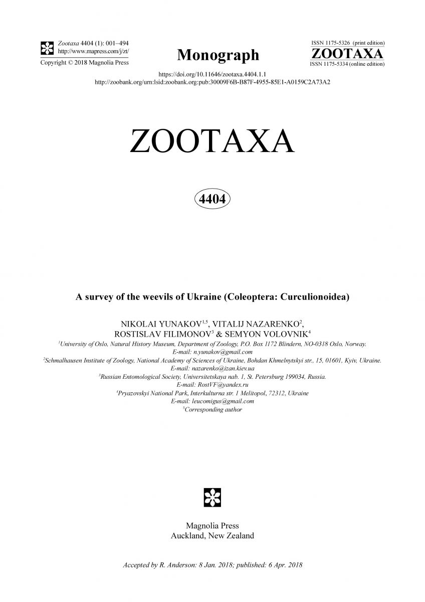 Помимо него, в авторский коллектив вошли энтомологи из США, России и Киева. Монография посвящена жукам-долгоносикам Украины.