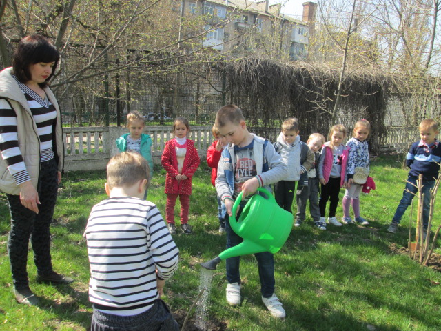 А вчера, 11 апреля старшие группы дошкольников стали участниками экологического проекта «Посади калину - украшение родной земли». Посаженые кусты калины будут расти под чутким присмотром малышей как украшение территории детского сада и символ нации на мирное счастливое будущее родной Украины. Педагоги младших и средних групп в свою очередь провели для своих воспитанников интересное занятие «Чудо ягодка - калина», познакомили детей с легендой о калине, рассказали о ее пользе, после чего детишки калину рисовали.