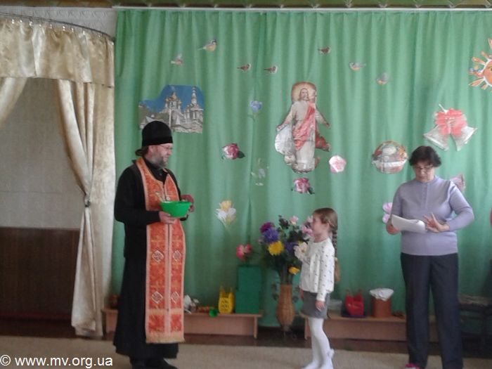 «Ребята хорошо подготовились к пасхальным праздникам и встретили батюшку пасхальными песнями и стихотворениями. Светлое и радостное настроение в детских душах осталось после визита священника, потому что он приехал с угощениями от прихода – пасками, окропил святой водичкой и пожелал детям пасхального настроения на Светлой седмице», – сказала Елена Сарбаш.