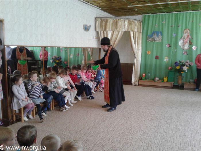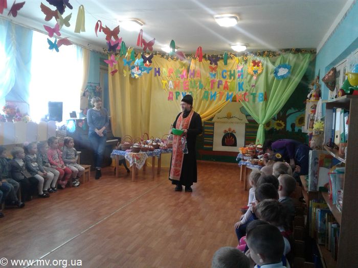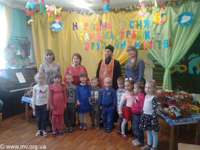 В с. Константиновка Мелитопольского района по приглашению руководителей детских садов «Теремок» и «Веселка» настоятель храма в честь иконы Казанской Пресвятой Богородицы с. Константиновка, игумен Макарий (Шадрин) посетил детсады и поздравил детей и воспитателей с праздником Светлого Христового Воскресения. Об этом журналисту «МВ» рассказала завуч константиновской воскресной школы «Виноград» Елена Сарбаш.