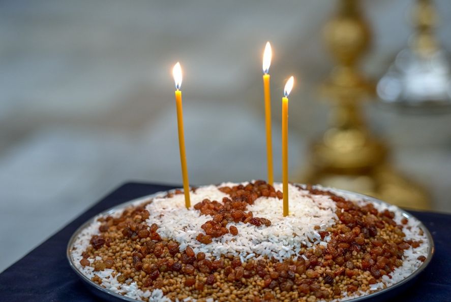 По традиции, на поминальной трапезе обязательно должен быть кулич, крашенки, кныши, коливо, различные пироги и главное блюдо - кутья. Ее принято готовить из риса, меда и изюма, и непременно на воде. На столе, за которым собирается вся семья, обязательно должна стоять свяченая вода.