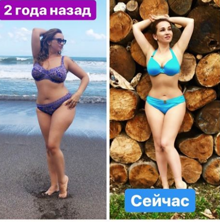 "Первое фото было сделано два года назад на Бали. Здесь я не в самом большом своем весе (когда весила 90 килограммов, предпочитала не фотографироваться в купальнике), но все же на 20 килограммов больше, чем сейчас", – рассказала звезда.
