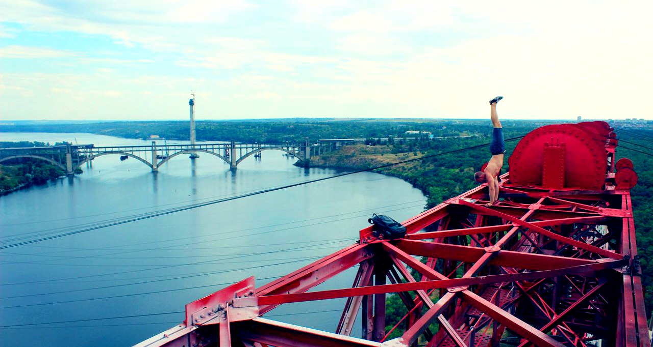 Я руфингом начал заниматься в 2010-2011 году, когда это еще это направление не имело никакого названия. Это спонтанно получилось, мы просто вышли гулять с другом и шли по Преображенскому мосту в Запорожье. Я то по перилам прошелся, то на руках на перилах постоял, потом повис на одной руке. Спустя год опять вышли гулять и пошли уже на другой мост. Там я сделал посерьезней трюки, которые мы сняли видео и выложили в Интернет. И спустя два года это начало называться руфингом. А до этого мы просто занимались экстримом, не придавая этому значения. Мы ставили цель и шли к ней: если нам нужно покорить кран, значит мы будем стараться и стремиться к этому. Без цели жить не интересно.