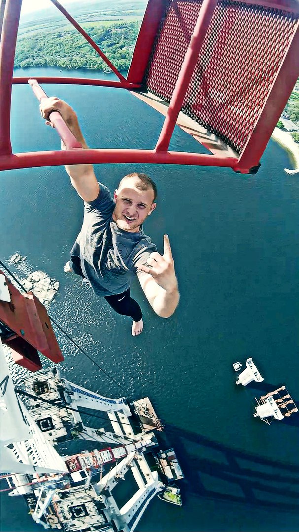 - В Запорожье залезал на самый высокий кран в Украине (200 м), там висел на одной руке. В Киеве залезал на самый высокий мост и на самое высокое здание в Украине. В нашем городе я покорял гостиницу "Мелитополь", залезал по газовой трубе без страховки. Также залезал на колесо обозрения и много других объектов в городе. И теперь осталась только телевышка.