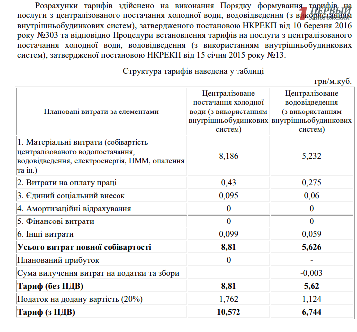 Так, для населения тариф на централизованное водоснабжение (с использование внутридомовых систем) поднимется на 18% и вырастет с 8,28 грн/м. куб до 10,572 грн/м. куб.