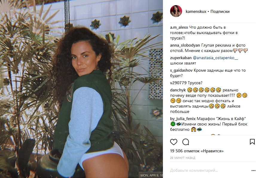 На этот раз поводом для обсуждения стал снимок, на котором Настя запечатлена в бомбере из своей новой коллекции спортивной одежды NKsport и стрингах.