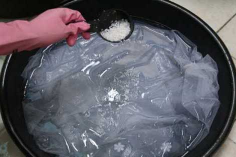 1. Замачивание. Предварительное замачивание тюля проводится в солевом растворе. Используют обычную поваренную соль, которую берут в количестве 100 г на 1 л воды. Растворите соль, добавьте немного моющего средства, замочите занавески на несколько часов.