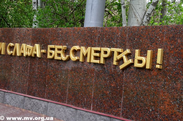 Несколько букв в надписи "Ваша воля была непреклонна, ваше мужество и слава - бессмертны" явно пытались оторвать от памятной стелы.