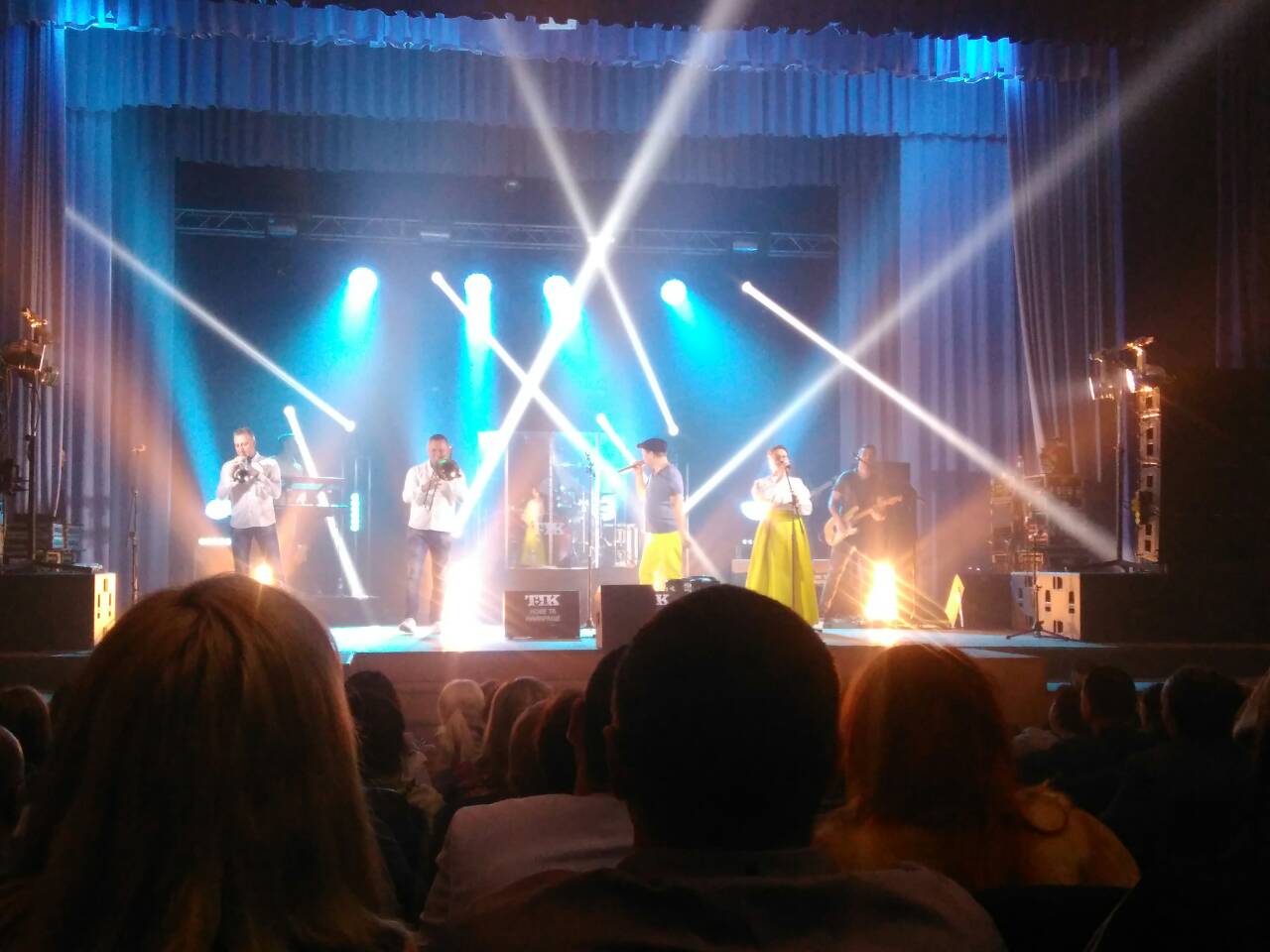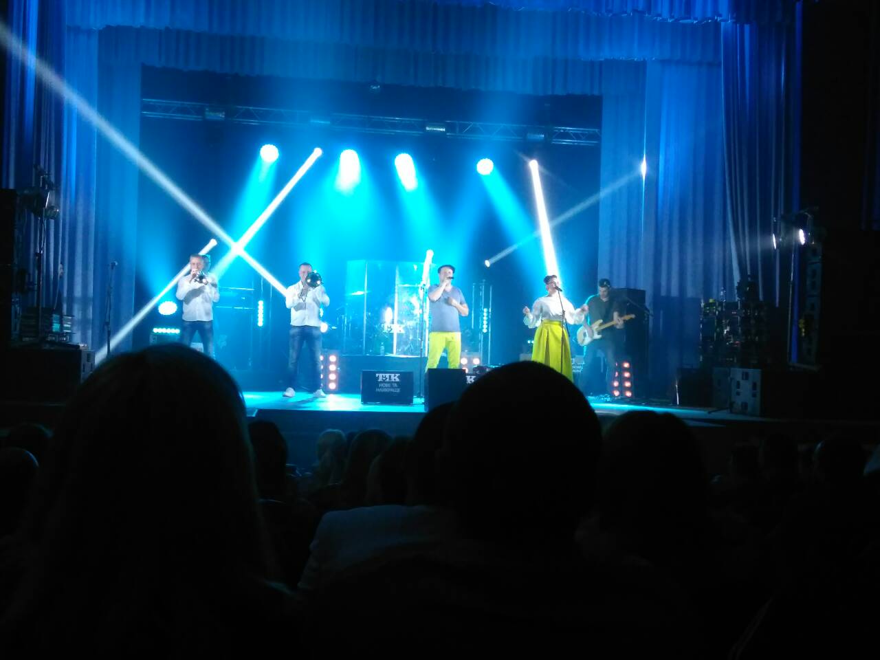 Зал в ДК Шевченко практически полон, и, судя по всему, в нем нет ни одного равнодушного человека, уже после исполнения первых композиций артистов буквально завалили цветами и даже спели вместе с ними.