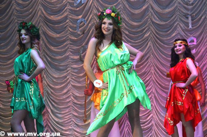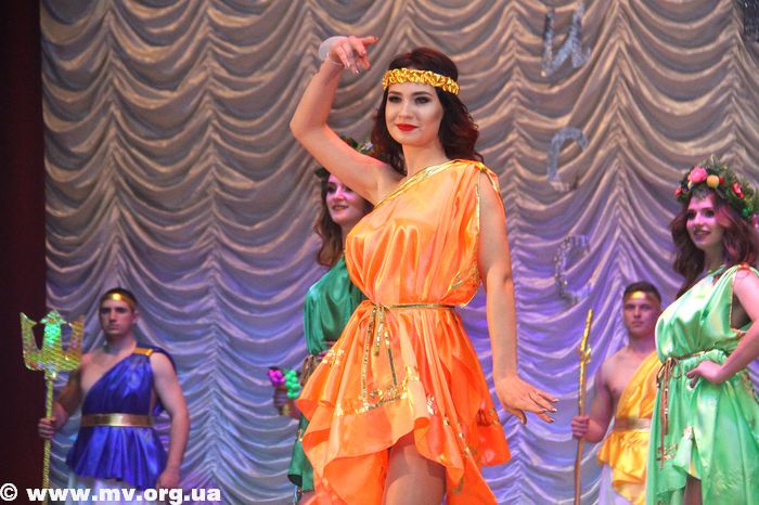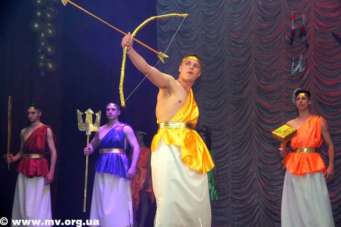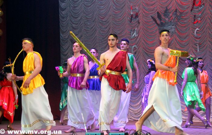 В рамках конкурса участников ожидало несколько дефиле, многие из которых были с элементами танца. И первыми божественную атмосферу Олимпа сменили национальные мотивы – ребята вышли на сцену в украинских костюмах.