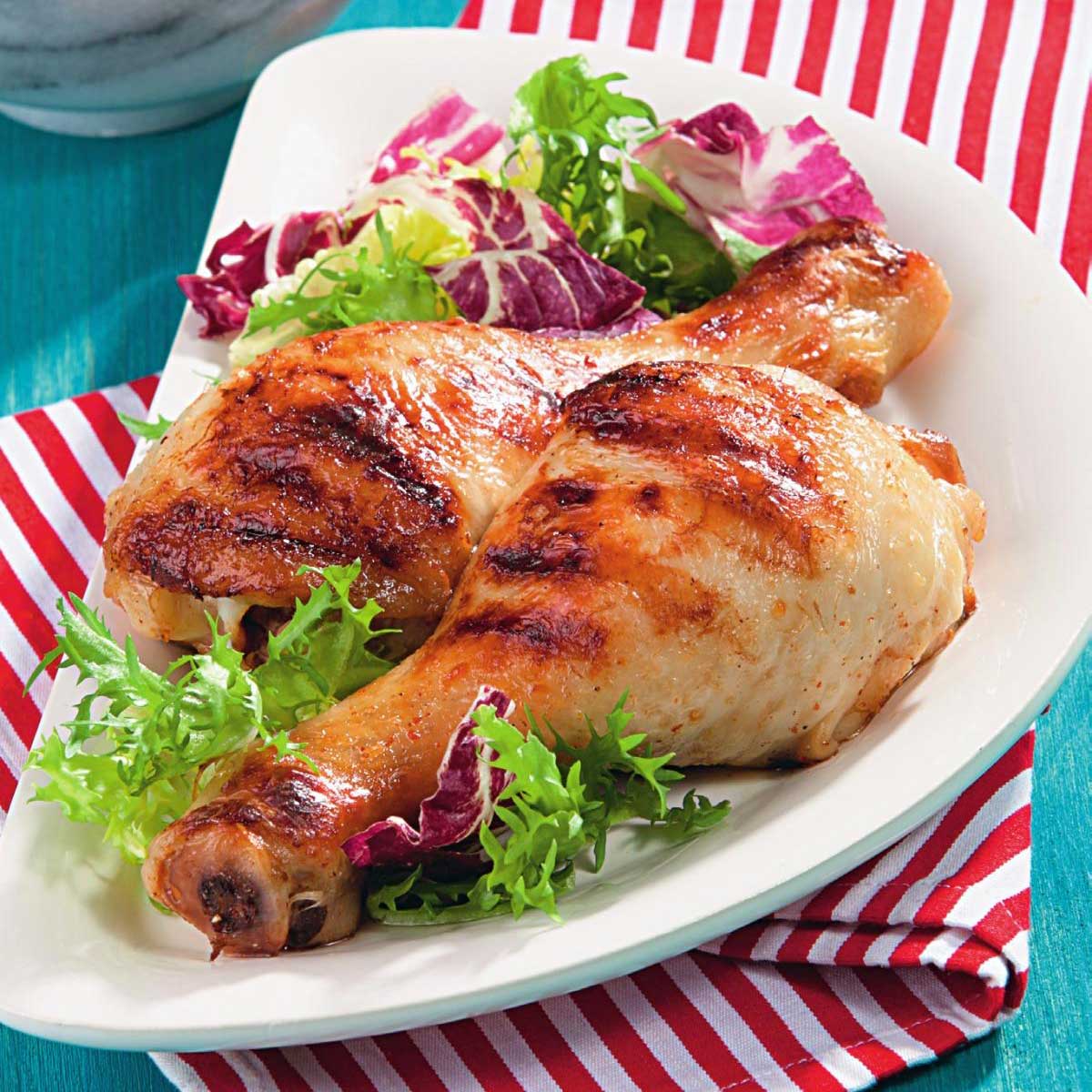 4. Решетку или гриль разогреть, смазать растительным маслом. Обжарить на гриле голени.