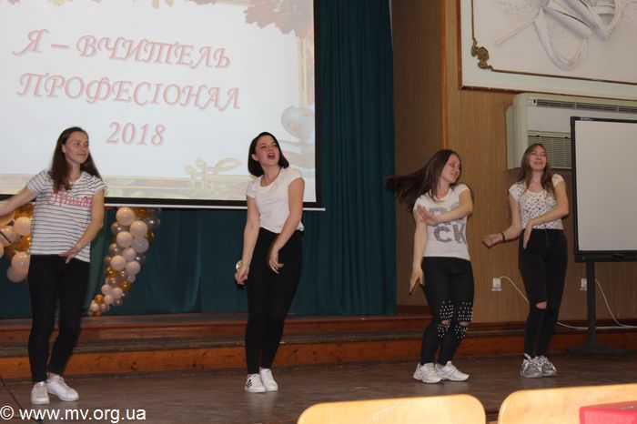 И первым этапом конкурса стала «Реклама профессии», где участницы рассказали, почему выбрали именно профессию педагога и именно ту или иную специальность. Следующим был конкурс «Методическая копилка», во время которого будущие педагоги продемонстрировали некоторые методические приемы, которые использовали на уроках во время практик. Так, например, М. Мануилова прямо на сцене провела небольшой химический эксперимент по определению по слюне курильщика и некурящего человека. И. Личковская, дабы показать часть своего урока, пригласила ребят из зала, а Ю. Костыря поделила зал на две команды и провела викторину на знание географии. Д. Передрий рассказала о геометрических иллюзиях, показывая, что и математика может быть интересной.