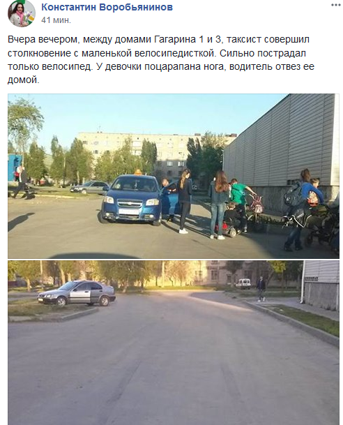 Вчера в районе Нового Мелитополя на улице Гагарина произошла авария, в ходе которой водитель такси столкнулся с велосипедом. Велосипедистом оказался ребенок. В результате ДТП пострадал только велосипед. Соответствующее фото было опубликовано в соцсетях.