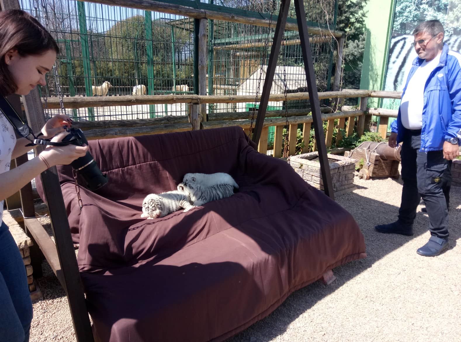 В Бердянском зоопарке родились белые тигрята: два мальчика и одна девочка. Девочка уникальная тем, что у нее отсутствует пигмент, она альбинос - полностью белого цвета.