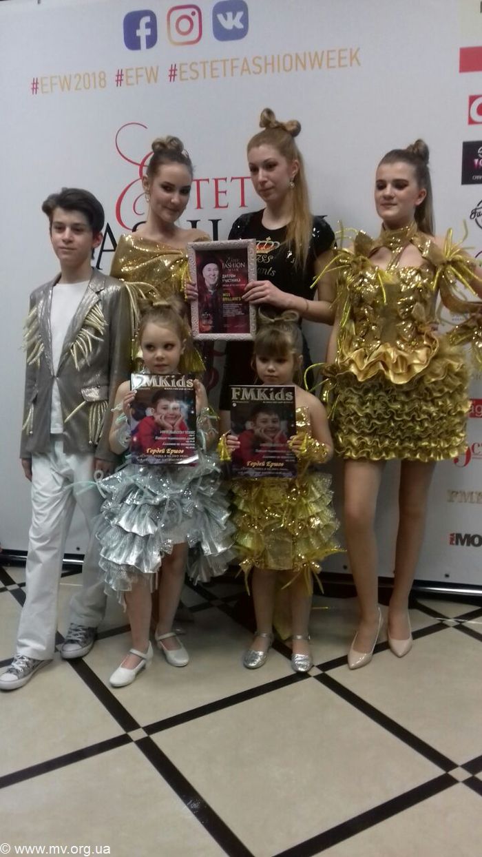 В день закрытия "Estet Fashion Week" свою брендовую коллекцию продемонстрировали модели арт-студии "Miss Brilliants" из Мелитополя Елена Черменина, Мария Карпинская, Карина Гавриленко и Светлана Тихонская. Светочка была одной из самых маленьких моделей Недели моды - ей всего 5 лет. Однако, как рассказала мама юной модели Ирина, не она успокаивала дочурку, а Света маму. Девчушка чувствовала себя на подиуме в свете вспышек десятков фотокамер и перед объективами десятков видеокамер очень естественно и гармонично. Она красиво продефелировала перед жюри и зрителями в двух выходах, представив одно из платьев коллекции "Miss Brilliants". В закулисье Светланка смело давала интервью телевизионщикам и фотографировалась со звездами шоу-бизнеса и эстрады. Так в ее фотоархиве теперь есть фото с легендарным певцом, композитором и поэтом, обладателем престижной премии "Dove Awards" Ли Мейсом (Lee Mays).