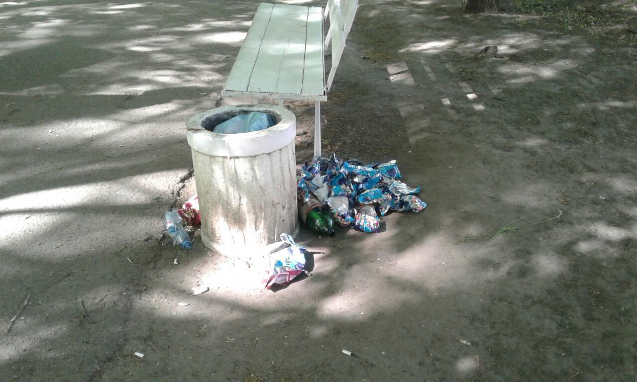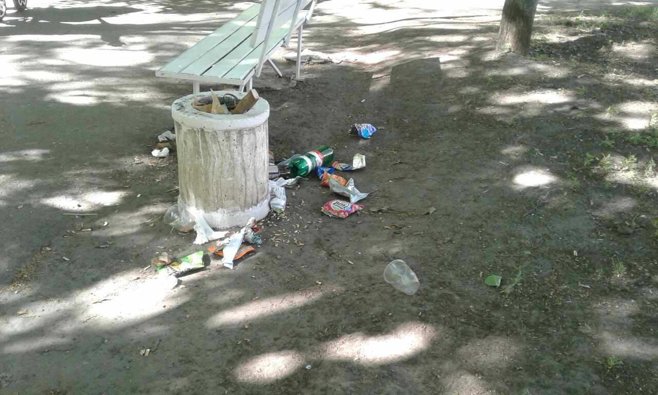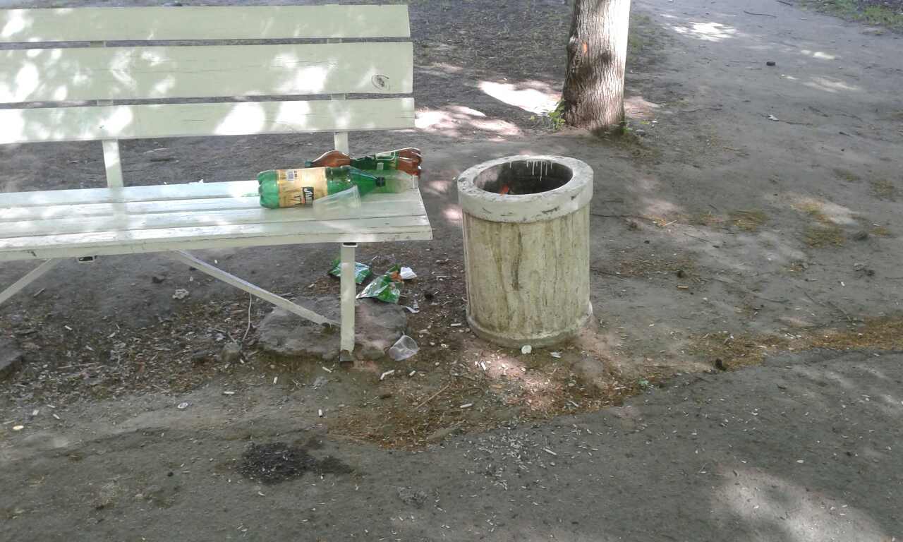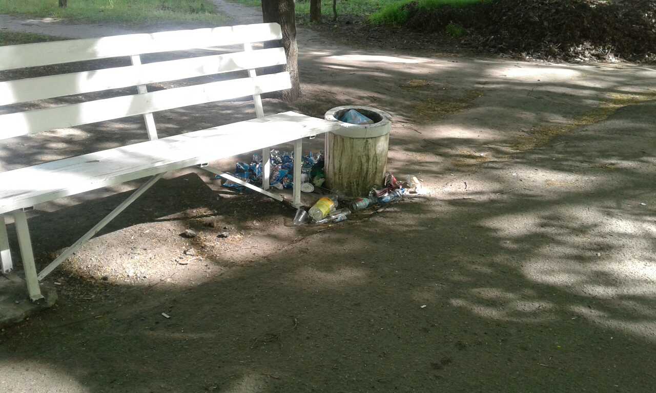 На липовой аллее возле каждой скамейки – куча мусора из бутылок, стаканчиков, оберток и т. п. Интересно, что рядом стоящие урны практически