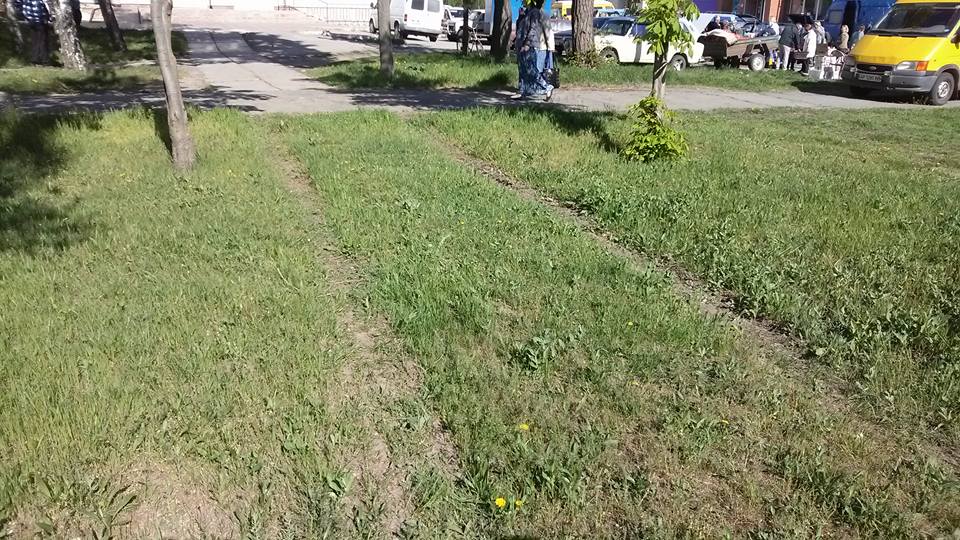 Ярмарочные торговцы паркуются прямо на газоне (ФОТО)