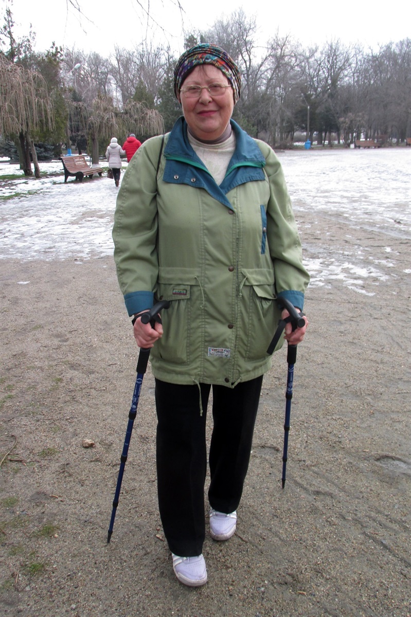 72-летняя Людмила Тараненко живет недалеко от парка культуры и отдыха им. М. Горького. Раньше женщина работала конструктором на заводе им. Воровского, потом вышла на пенсию. Не раз, пересекая парковые аллеи, она с интересом вглядывалась в людей, которые шли по дорожкам с особыми палками. Присмотрелась - здесь и одноклассники! Решила присоединиться. Теперь она ходит с такими же палками каждый день. Вот как понравилось!