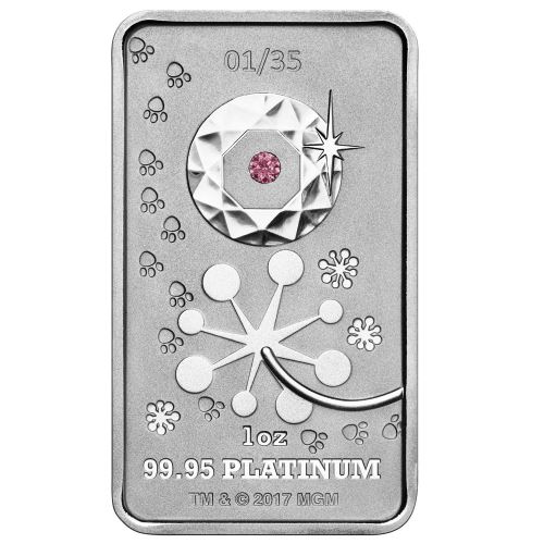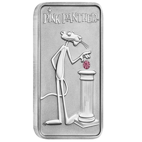 Монетный двор в Перте отчеканил платиновую прямоугольную монету в честь Розовой Пантеры. Нумизматическое изделие декорировано бриллиантом массой 0,8 карата.