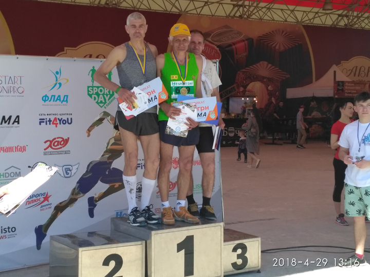В. Федорец соревновался на дистанции 6 км в возрастной группе 50-59 лет. По словам легкоатлета, ему удалось поставить личный рекорд - 23 мин 50 сек, а еще он почти на финише обошел своего давнего соперника из Веселого (Запорожская обл.) Александра Шевчука, у которого не мог вырвать победу несколько лет. Наш спортсмен завоевал первое место и был награжден медалью финишера, медалью за первое место, грамотой и памятными призами. Как отмечает В. Федорец, ему очень понравился праздник спорта, который помогла организовать супруга мэра Днепра Марина Филатова - фанатка бега, которая и сама участвовала в кроссе. Интересно, что она учредила призы - серебряные кольца для последних финишеров на дистанции 6 и 9 км, чтобы наградить за упорство и преодоление себя, для поднятия настроения этих спортсменов.