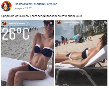 Дочь Веры Глаголевой подозревают в анорексии (фото)